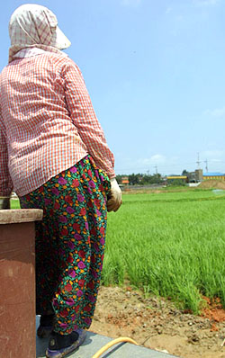 담양군 창평면 농로에서 만난, 논둑의 잡초를 뽑고 있던 50대 아주머니가 입은 옷은 ‘몸뻬와 비옷’으로 이루어진 ‘투피스’였다. 가는 곳마다 몸뻬와 비옷이다. 장마철이라서 비옷을 입었겠지만 몸뻬는 철이 따로 없다. “여름에는 얇디 얇은 놈 입고, 시한(겨울)에는 솜이 있는 것도 입고, 이녁이 입고자픈 대로 입제….” 창평 아주머니 말이다. 그 중 몸뻬가 최대로 소용되는 시기는 여름. 농사철인 데다 비를 비롯한 물에 가장 많이 노출되기 때문이다. 아주머니는 “일 많이 할 때는 하루에 세 번도 갈아입는다”고 말한다. 허리와 발목을 조이고 다른 부분은 풍성하게 하여 활동성을 높인 작업복. 몸뻬에 대한 통상적인 규정이다. 몸뻬의 전래에 대해서는, 1940년대에 제2차세계대전이 격렬해지면서 여학생과 아녀자들의 방공복, 노력동원을 위한 작업복의 용도로 일제가 강제보급하면서 비롯됐다는 시각이 일반적이다. 몸뻬에 대한 순화어가 ‘왜바지’ ‘일바지’ ‘허드렛바지’인 점도 이 같은 사실을 뒷받침한다. 이후 1950년대 한국전쟁과 60∼70년대 새마을운동이 맞물리면서 ‘강제’는 없었지만 여성노동력이 지속적으로 요구되어 몸뻬는 확고하게 ‘작업복’으로 자리잡게 되었다. “비오믄 비옷입고, 농약할 때는 방수복 입고, 쟁기질 할 때는 고무 장화를 신어.” 화순군 동복면에서 만난 윤공석(70)할아버지 패션은 비옷 상의에 허리까지 올라오는 고무장화다. 할아버지가 말하는 방수복은 비옷과 다르다. 햇볕 짱짱한 날 농약을 하기 때문에 방수복은 비옷보다 얇고 가볍다. 과연 방수복이나 비옷을 ‘옷’이라고 할 수 있을까. 농부들의 ‘와이셔츠’라는 면에서 분명히 옷이겠지만, 멋보다는 기능성이 과도하게 강조된 탓에 농사도구로 봐야 한다는 시각도 있다.