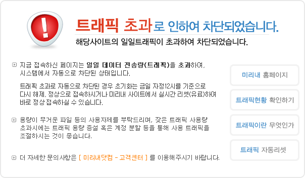 초과로 인해 홈페이지 접속이 차단된 상태다.